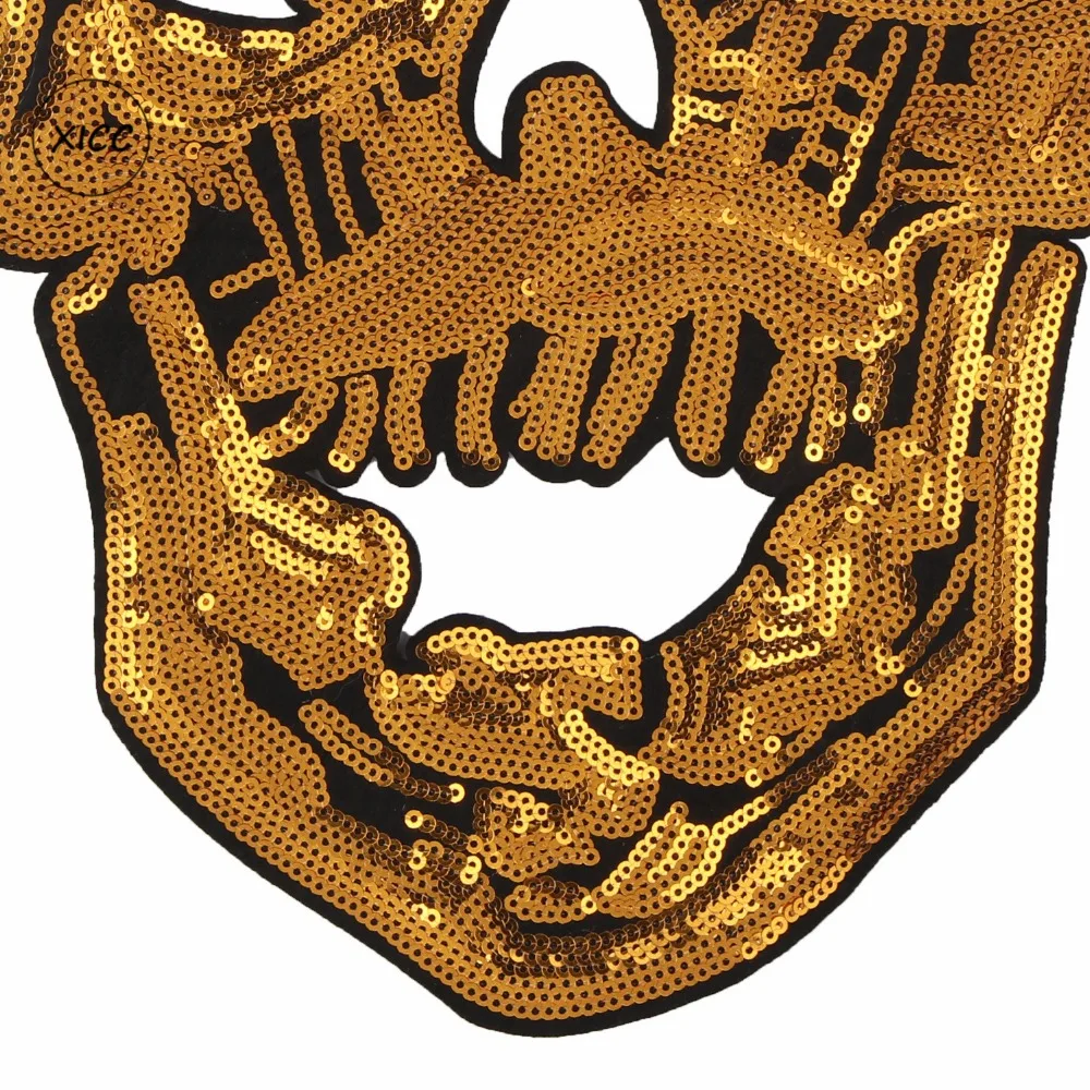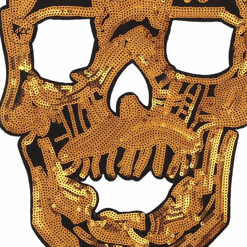T N Grosse Grosse 34cm Pailletten Schadel Stickerei Perlen Patches Gold Glanz Horrible Mode Applique Aufkleber Nahen Auf Fur Kleidung Diy Aufnaher Aliexpress