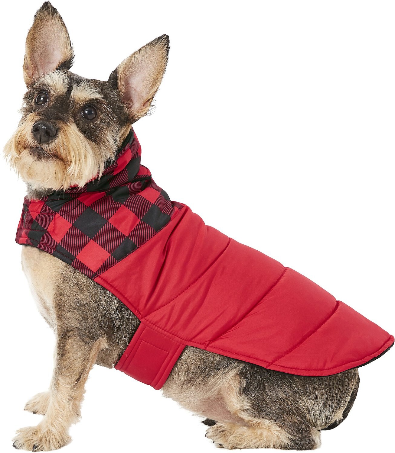 Frisco Mediumweight Boulder Plaid Insulated Dog Cat Puffer Coat Red Medium Chewy Com