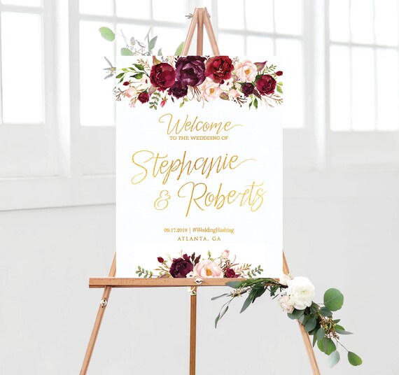Wedding Welcome Sign Reception Sign Wedding Sign Wedding Welcome Sign Printable Burgundy Wedding Gold Wedding Marsala Wedding Sign Etsy